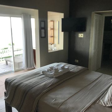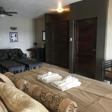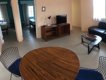 2 Separate queen rooms road side, partial ocean view from living room